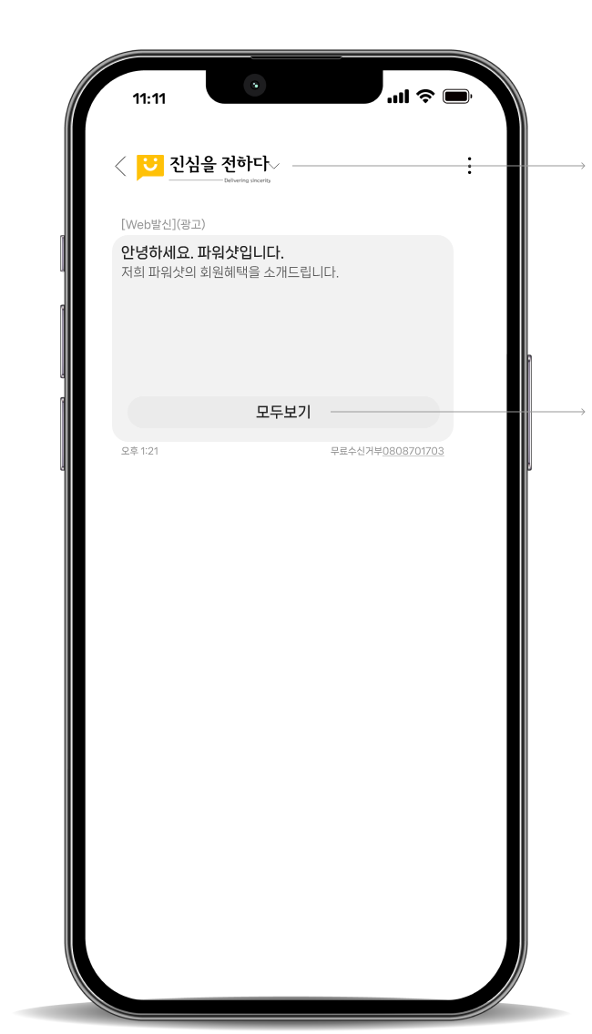 별도의 어플 설치없이 기존 문자와 동일하게 문자함에서 확인할 수 있습니다.
