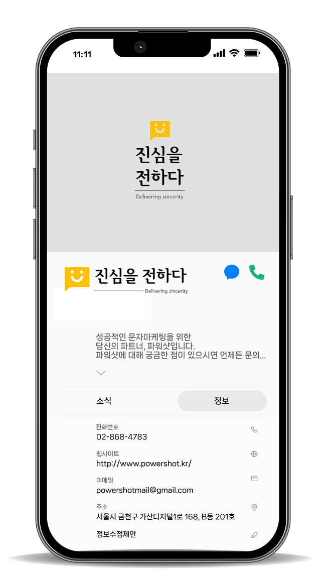 발신번호 대신 기업로고와 기업명으로 전송되기 때문에 신뢰도 UP! 시각적 홍보효과도 UP!